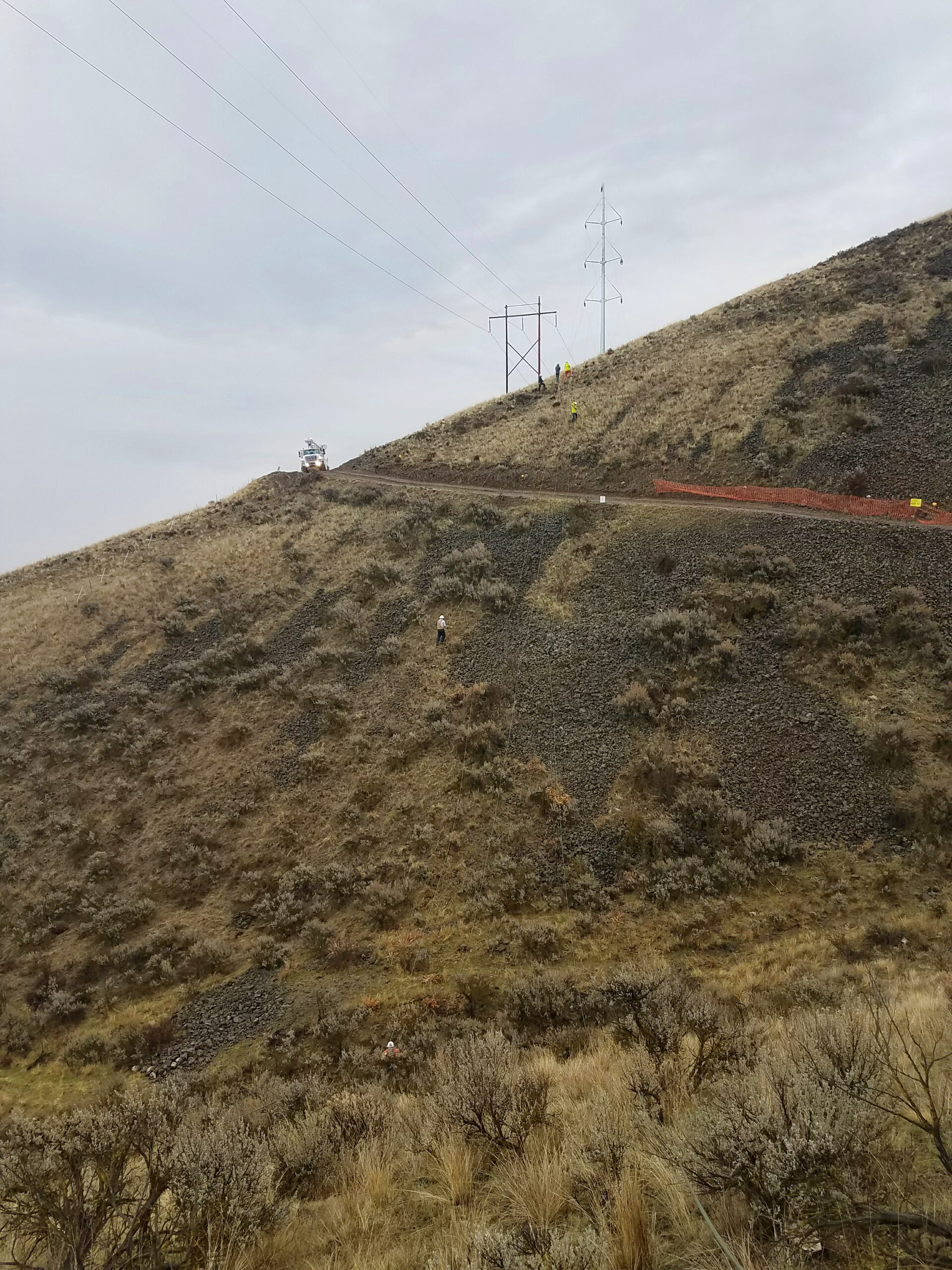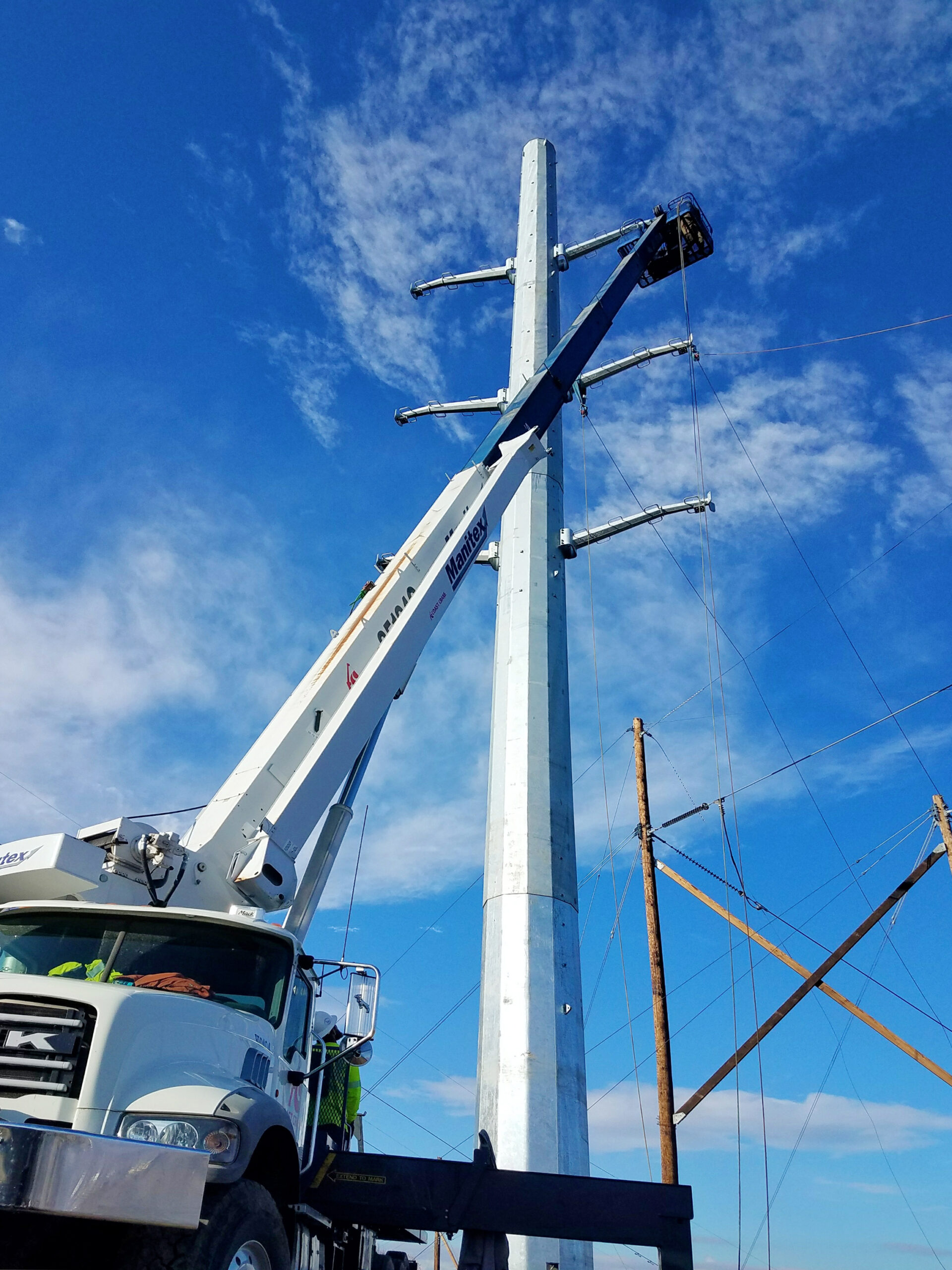 Two custom steel H-frame structures were installed on reinforced concrete drilled piers with ACCC conductor over the Columbia river crossing.